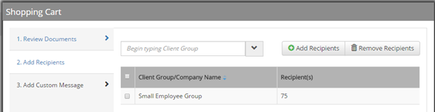 - Add recipients to the Document Direct™ campaign. You can either add a client group or specific clients.