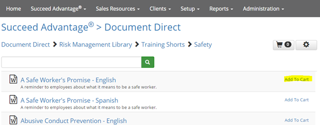 - From your admin site select Succeed Advantage® from the menu bar, and then select Document Direct™ from the drop-down menu